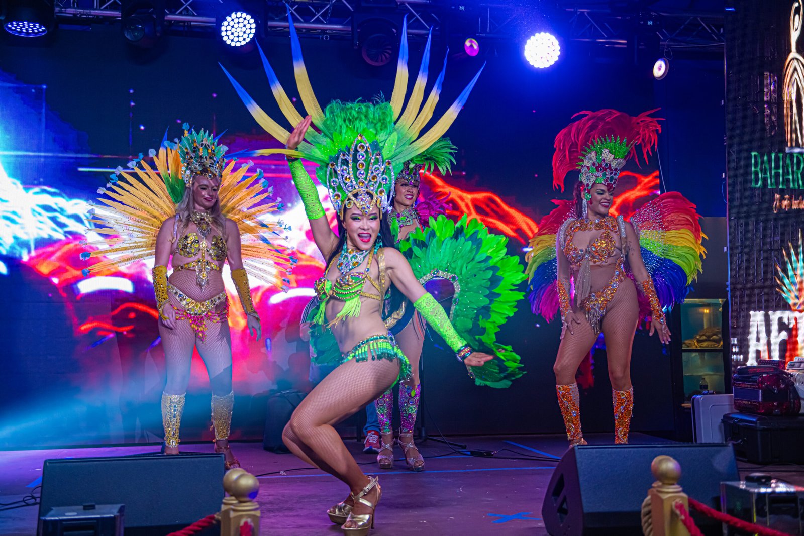 Authentic Brazilian dancers, costumes, choreography, and interactive crowd engagement.