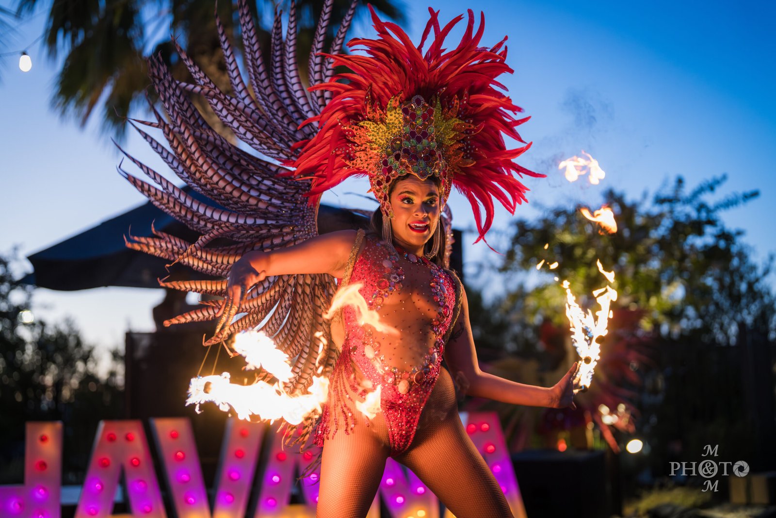 Samba show enhanced with professional fire elements.